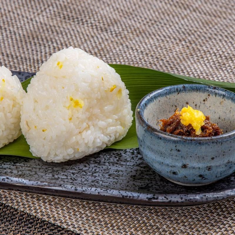 ご飯にも刻んだゆずを混ぜて作った香り豊かなおにぎりです。