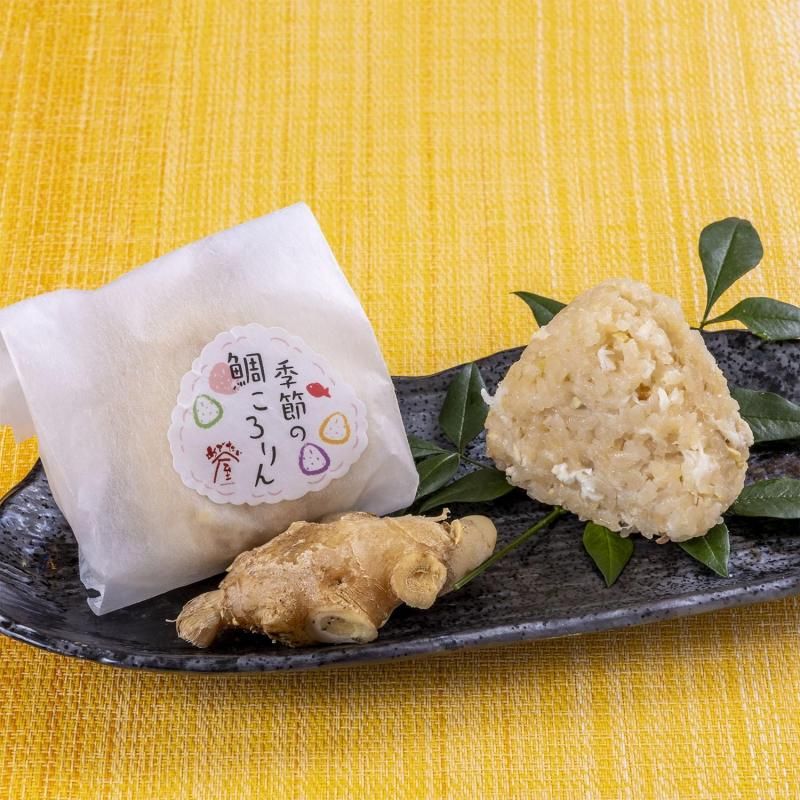 ☆季節の鯛ころりん.今回は炊き上がった自慢の鯛めしに刻んだしょうがを混ぜました。
